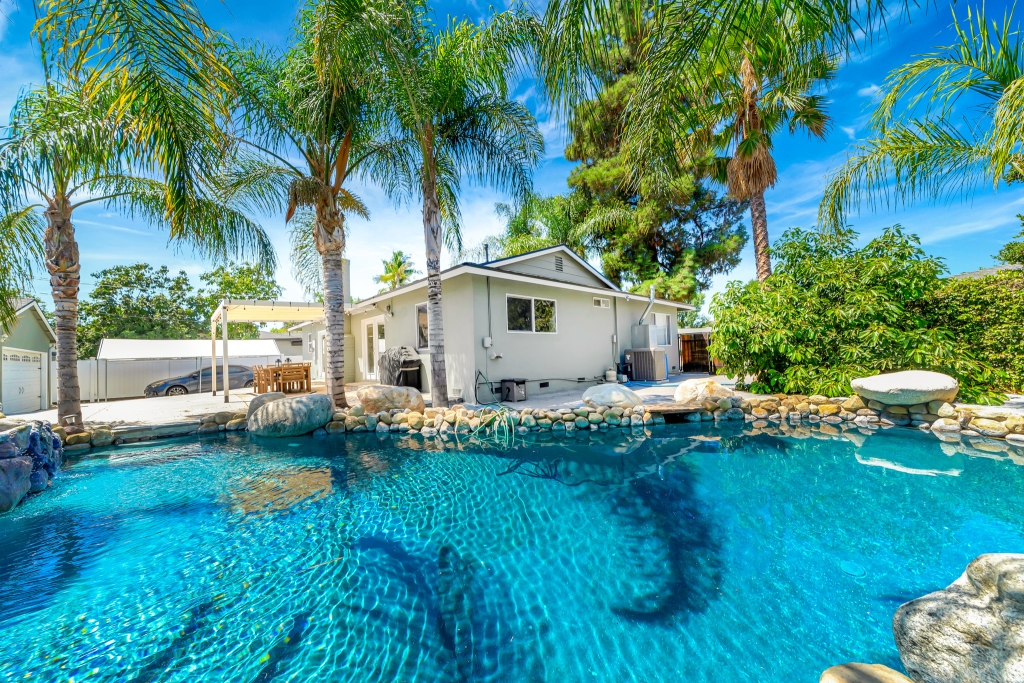 Nestled on the end of a CUL-DE-SAC in one of Reseda’s best neighborhoods, this cozy mid-century modern home awaits it’s next family. The backyard feels like a Vegas resort! A tropical oasis with lagoon style pool, jacuzzi, waterfall, covered patio and plenty of room to lounge, play, or throw parties. You’ll enjoy PRIVACY from high walls and/or trees on all sides of the property! UPGRADES, amenities,...